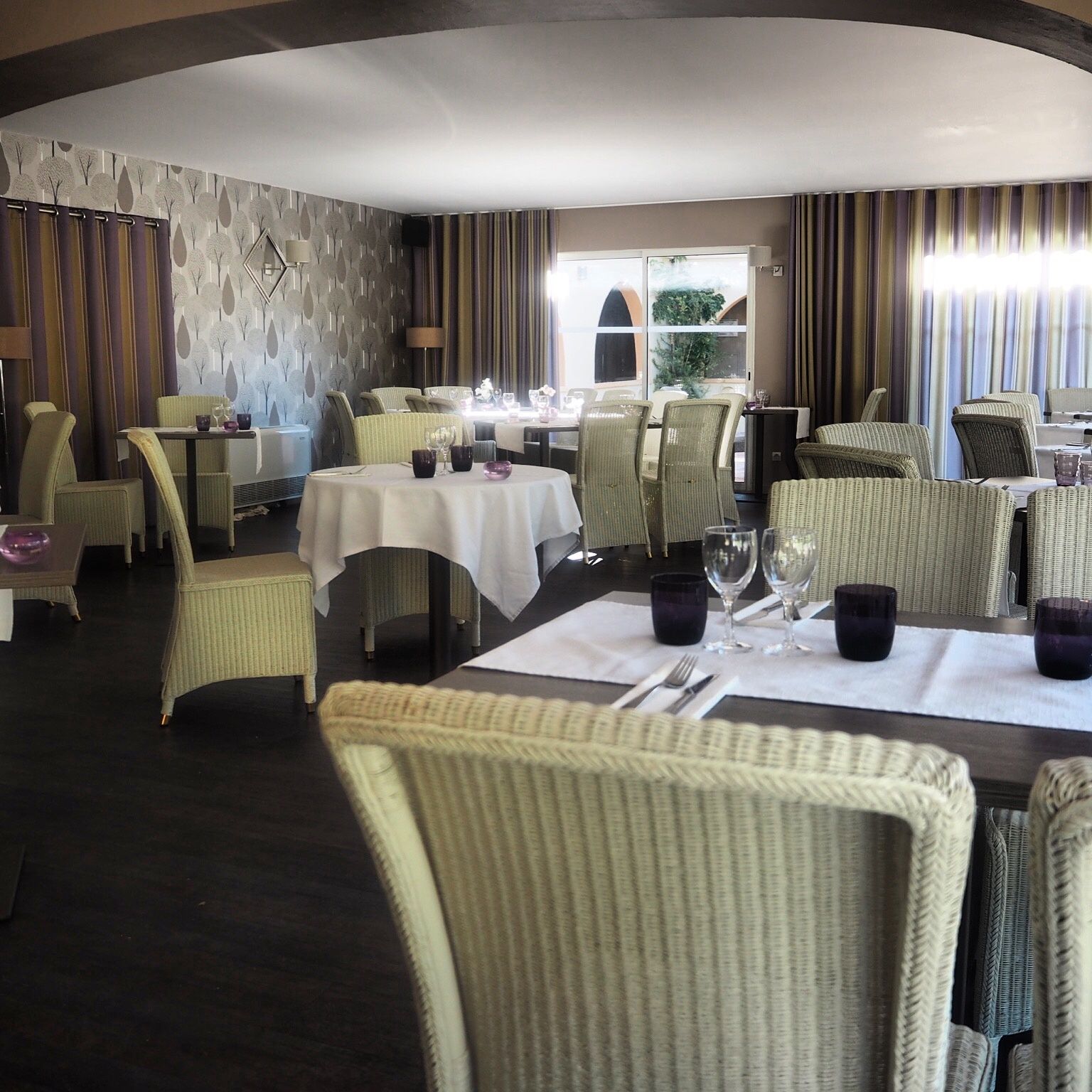 La salle de restaurant est très bien agencée, face au jardin, la vue sur la piscine valorise le cadre,