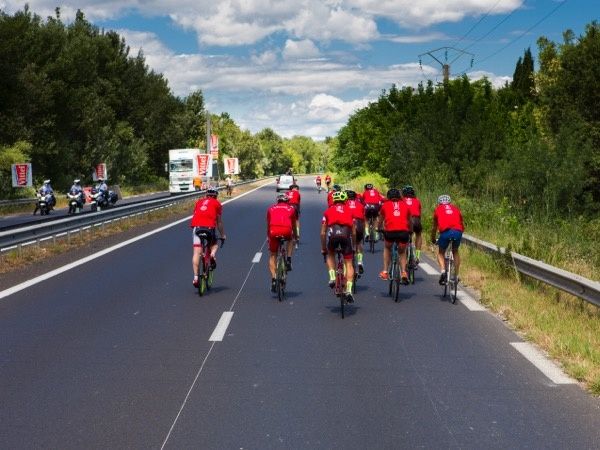 C'est amusant de me retrouver à suivre tous ces cyclistes, moi qui est l'habitude d'être avec mon VTT dans la colline, je me retrouve pour la première fois dans un "troupetto", je m'abrite du vent qui souffle fort comme je peux et pédale...