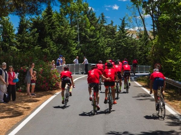Il y a bien eu deux montées où j'ai eu du mal à suivre le rythme imposé, mon vélo n'avance pas, je pédale comme je peux, les passants nous encouragent, la bonne humeur légendaire des bords de route du Tour est déjà présente,
