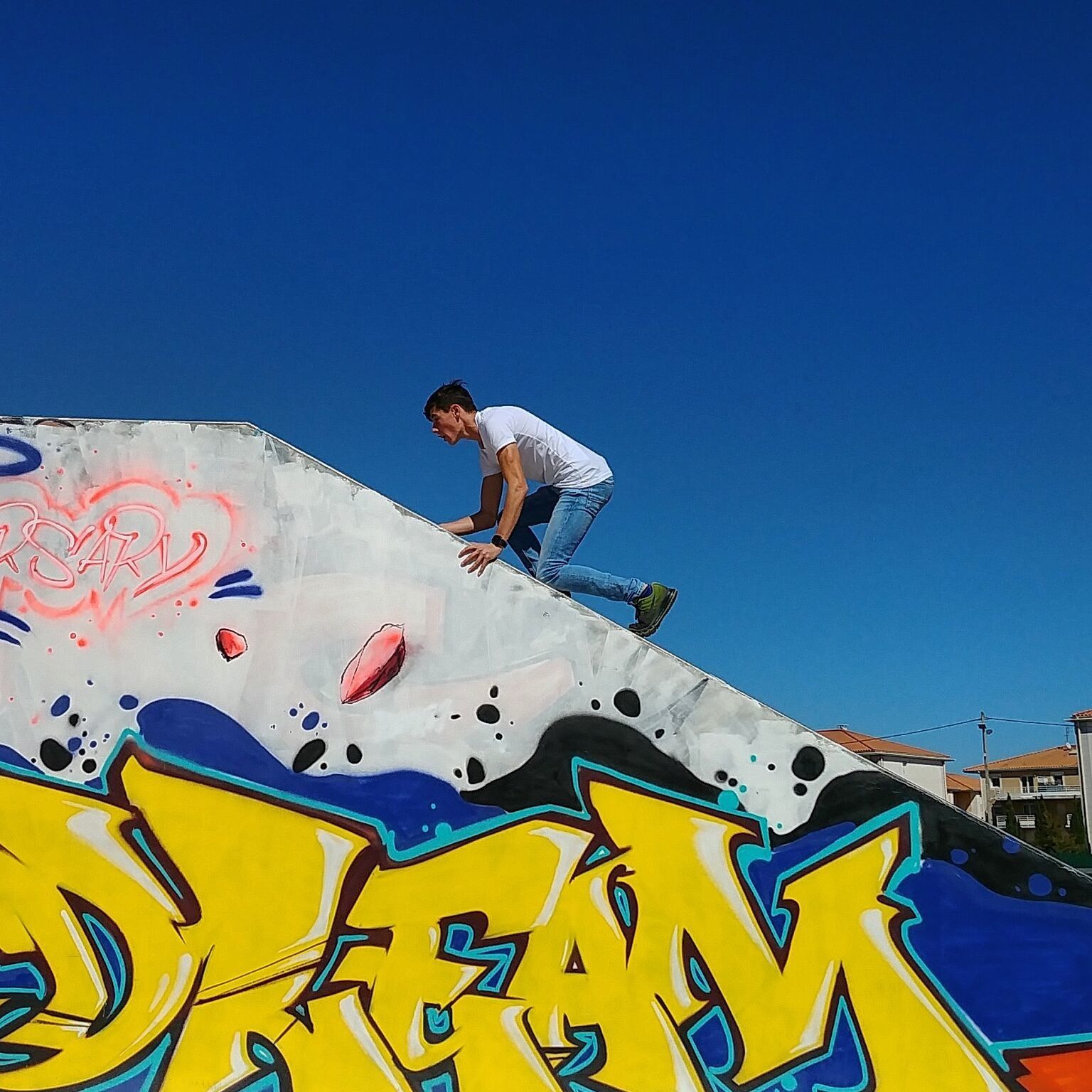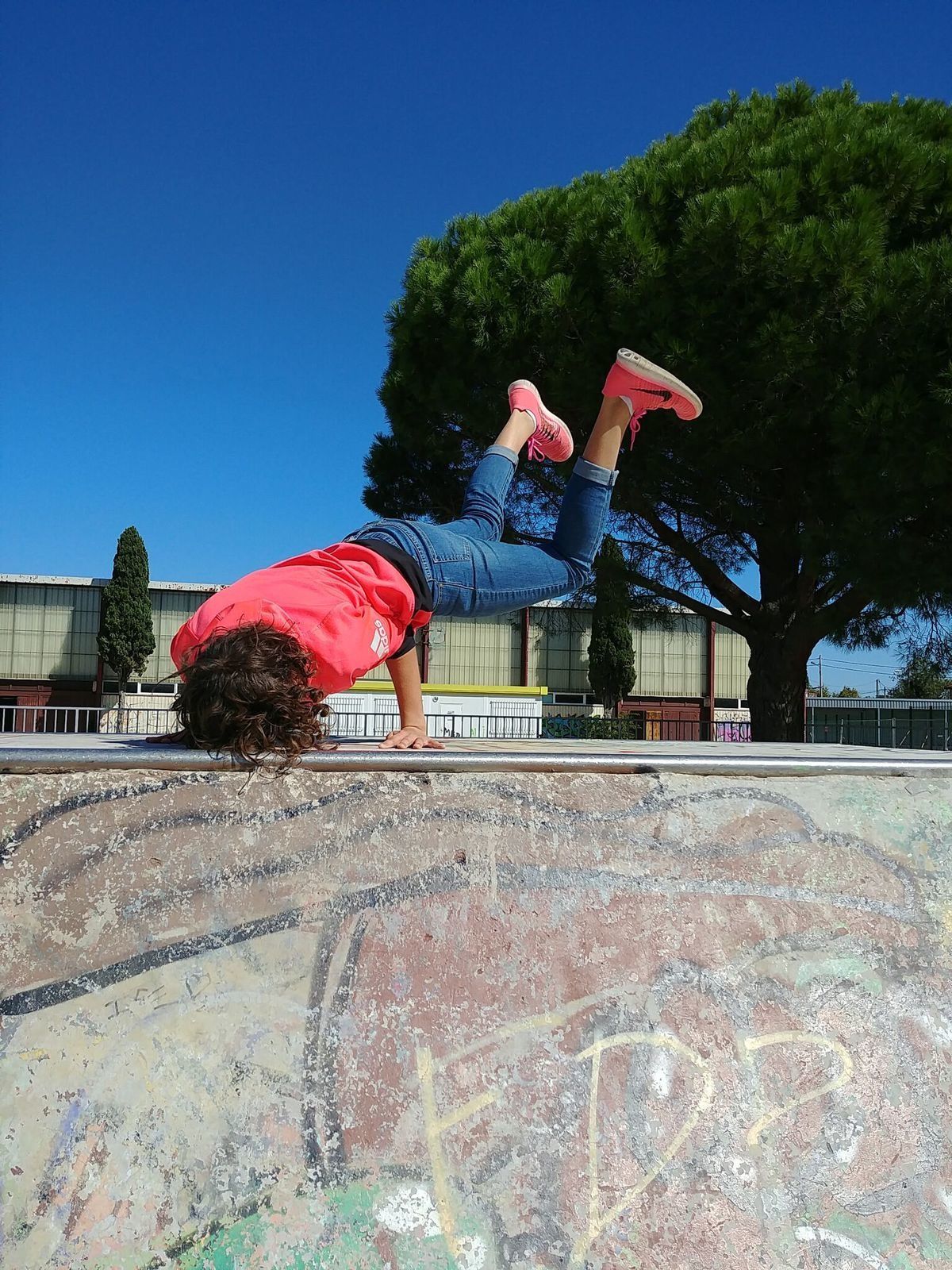 On a pas beaucoup hésité pour tester les exercices proposés, direction le skate park déserté à ce moment là, ... tous les supports furent utilisés pour l'occasion et les enfants se sont pris en jeu.